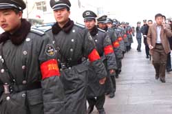 北京保安執勤隊員三月十五日為“3.15”消費者日大型活動值勤。北京市保安服務總公司是我國成立最早、規模最大的保安服務公司之一。截止2003年8月,總公司所屬共有28家保安分公司,1家保安科技發展中心,保安從業人員53000余人,保安人防客戶單位4300多家,技防客戶單位2100多家,保安服務遍及全市各行各業,包括聯合國駐華機構,外國駐華使館,外國商社,政府機關,金融機構,大專院校,賓館飯店,商場超市、集貿市場、繁華街區、居民社區等,已初步形成了覆蓋全市的、人防與技防緊密結合的新型安全防范網絡。作者:鄒憲