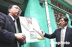 香港市區重建局18日宣布,準備斥資1億元在灣仔茂蘿街展開“舊區活化”項目,協助推進文化創意產業發展。圖為官員向媒體展示重建后的藍圖。作者:譚達明