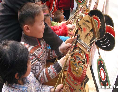 三月二十九日,鄭州一小學(xué)幾名孩子在老師指導(dǎo)下,學(xué)習(xí)擺弄傳統(tǒng)皮影。皮影戲產(chǎn)生于西漢民間,如今日漸失傳。河南鄭州民間皮影戲劇藝術(shù)家為搶救這種稀有的民間文化藝術(shù),聯(lián)合了幾家中小學(xué)校,讓皮影戲走進校園。作者:慎重