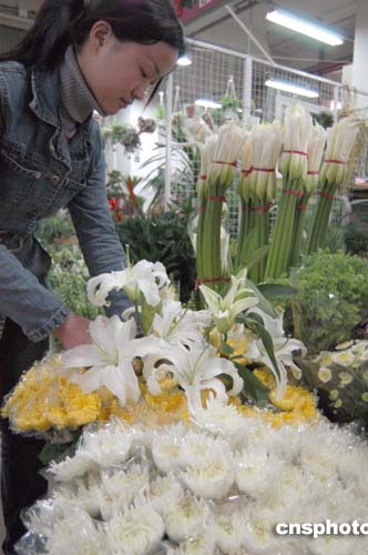 圖:清明節前北京鮮花市場需求激增