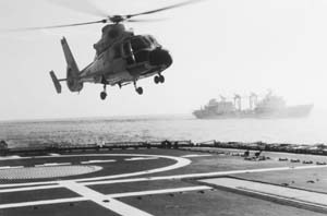 在2002年5月至9月的環球出訪重大軍事外交活動中,中國海軍第一支艦載機部隊“直九”型艦載直升機機組歷時132天,先后在印度洋、大西洋、太平洋和南中國海、紅海、地中海、黑海、加勒比海等近20個海區航行,進行了18個飛行日,共132架的訓練和任務飛行、出色地完成了艦機協同反潛、超視距引導攻擊、空中偵察、航空拍攝、垂直補給、人員換乘以及海上聯合救護等任務。(來源:《人民日報海外版》;作者:胡寶良姜毅)