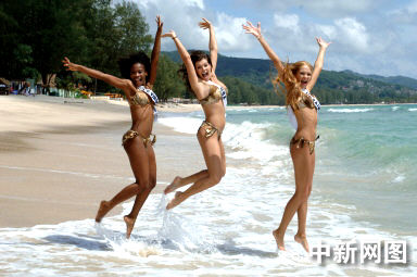 5月19日,2005環(huán)球小姐參賽佳麗在泰國(guó)普吉島泳裝亮相。
