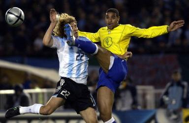 此后,場上火藥味漸濃,兩隊隊員頻頻出現肢體沖突,裁判不得不先后出示多張黃牌來讓雙方冷靜。巴西隊的進攻依然沒有起色,阿根廷隊的反擊確實非常具有威脅性。第39分鐘,阿根廷隊兩名前鋒克雷斯波和薩維奧拉配合,后者將球傳中,克雷斯波在羅克-儒尼奧爾盯防下頭球一蹭,皮球應聲入網。比分被擴大為3比0。