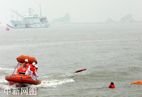 中新社上海七月七日電 (記者褚婷婷)中國目前規模最大、參演單位最多、演習科目最全的一次海上搜救演習——二○○五年東海聯合搜救演習,今天中午在上海洋山深水港水域成功進行,日本海上保安廳、韓國海洋警察廳派船參加演習,據悉,這是外國船舶首次參加中國海上搜救演習活動。