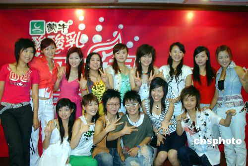 七月十三日,二○○五超級女聲年度總決選新聞發(fā)布會(huì)在湖南長沙舉行,來自長沙、廣州、成都等五大唱區(qū)前三甲的選手一同亮相,為七月十五日開始的年度全國總決賽做宣傳。作者:鄧霞
