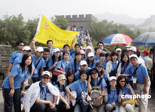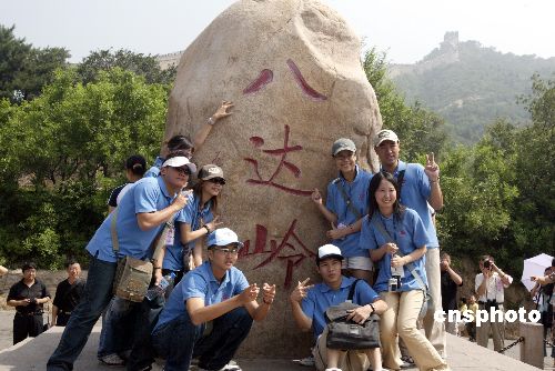 七月十四日,二○○五年臺(tái)胞青年千人夏令營(yíng)營(yíng)員游覽北京八達(dá)嶺長(zhǎng)城。圖為營(yíng)員們?cè)陂L(zhǎng)城上合影留念。作者:任海霞
