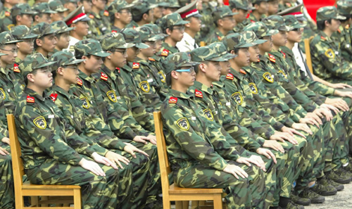 中新社香港七月二十日電 首屆“香港青少年軍事夏令營”今日在解放軍駐香港部隊開營。來自香港八十四所學校的一百名學生將在軍營度過為期十一天的軍事夏令營生活。