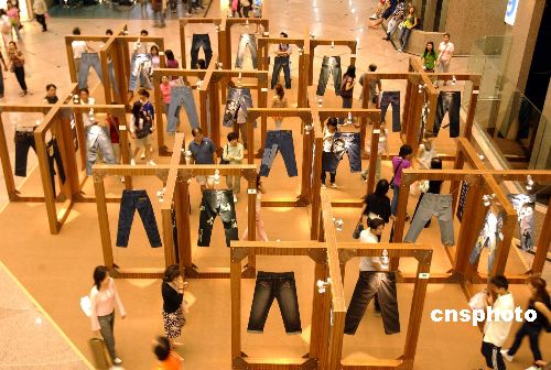 7月30日,正在香港時(shí)代廣場(chǎng)舉行Jeans Fever Exhibition牛仔褲展覽,吸引不少市民觀賞。香港創(chuàng)作人曾偉文在多個(gè)世界名牌限量版牛仔褲上繪上名人肖像,使時(shí)裝與藝術(shù)融為一體。作者:洪少葵