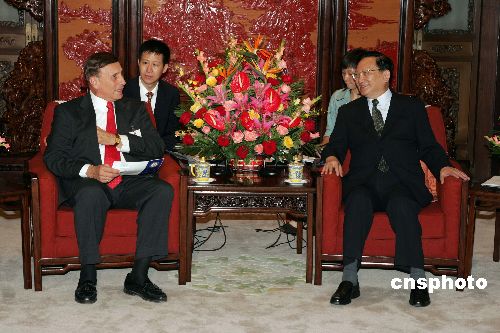 中國國務委員唐家璇八月二日在北京中南海會見代理團長約翰·米加等美國國會眾議院美中議會交流小組代表團成員。作者:毛建軍