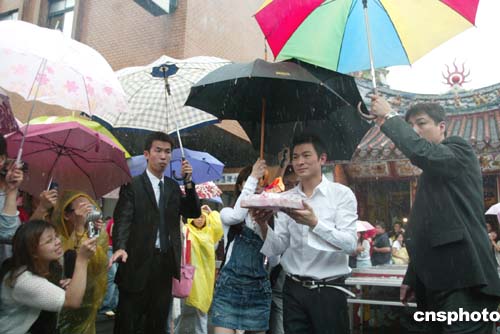 八月四日,著名歌星劉德華來到臺北霞海城隍廟,拜月下老人,同時為歌迷求姻緣線。作者:盛佳鵬