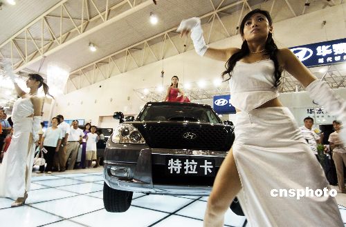 第四屆長春國際汽車博覽會八月五日正式開展。各汽車廠商為吸引關(guān)注,均大打香車美女牌。作者:吳兆飛
