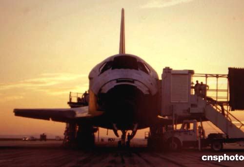發(fā)現(xiàn)號于美國西部時間凌晨五時十二分安全降落在加州愛德華茲空軍基地,它十四天繞地球飛行二百一十九圈,行程五百八十萬英里。