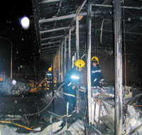 滅火過程中,外勞仍不斷攻擊戒備警員,部分警車遭砸毀。消防車滅火后留守現(xiàn)場也遭波擊。警方于凌晨零時30分決定撤離所有人車,退到廠房圍籬外,并緊急征調(diào)暴動警力支持。