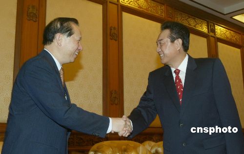 八月二十二日,中共中央臺(tái)辦主任陳云林在北京釣魚臺(tái)國(guó)賓館會(huì)見親民黨秘書長(zhǎng)秦金生。作者:史利