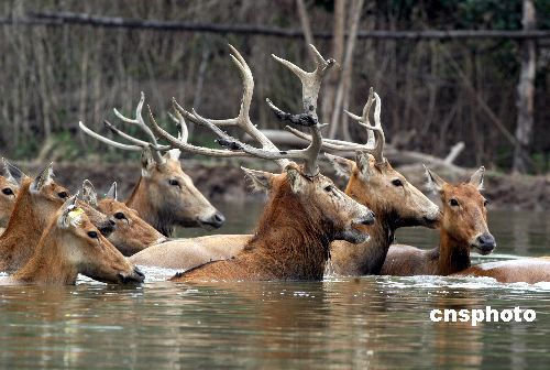 | 八月二十三日,北京麋鹿生態(tài)實驗中心內(nèi)的麋鹿在悠閑地在水中乘涼。麋鹿作為國家一級保護動物,世界“受危級”物種,曾僅產(chǎn)中國。清末,由于天災人禍,麋鹿作為一個物種,在中國滅絕了。幸有少量個體在其滅絕之前被引種到歐洲,最終在英國繁衍下來。1985年,麋鹿結束百年“華僑”生涯,回歸故里——中國北京。二零零五年麋鹿返家二十周年之際,數(shù)量已達到二千頭左右。作者:張宇