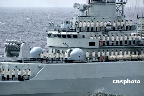 圖:中俄聯(lián)合軍事演習(xí)的海軍艦艇接受檢閱