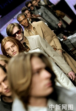 2006年1月18日,2006/2007秋冬男裝發布在米蘭舉行。圖為模特展示華倫天奴最新款秋冬裝。