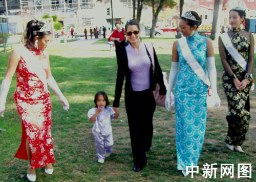 一月二十九日周末,美國洛杉磯二00六年華埠小姐巧遇美國媽媽收養的中國女兒,共同歡慶中國農歷狗年。 作者 賈國榮