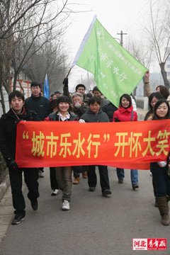專程從北京趕來參加此次“城市樂水行”活動的張峻峰介紹說,目前全國已經(jīng)有十多個城市開展了這一新潮的健身活動。今年3月份,他們還將計劃由京津冀的志愿者共同結(jié)伴,沿著三地的南水北調(diào)徒步行走,在考察水環(huán)境的同時,健身、健心、健智,達(dá)到人與自然和諧。
