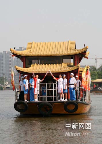 奧運(yùn)圣火在嘉興南湖進(jìn)行水上傳遞。