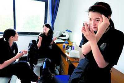 今年5月,她們和男隊員一起來到北京人民警察學(xué)院,接受極其嚴(yán)格的封閉式警務(wù)特種駕駛摩托車訓(xùn)練。 這些“警花”年齡最大的37歲、最小的25歲。盡管她們都有駕照,可半數(shù)人平時從不開車,對她們而言,騎摩托車真是大姑娘上轎頭一回。隊員們訓(xùn)練用的摩托車都是大排量摩托車,重量分別達(dá)到了250公斤和350公斤。 女隊員別說騎著它行駛,就是騎坐在車上把住車把保持不晃不倒也不是件容易的事。來自交通指揮中心的李亞麗十多年前是改革開放后首批在天安門巡邏的女交警之一,她說,和現(xiàn)在相比,自己當(dāng)時騎的摩托車簡直就是一個大玩具。