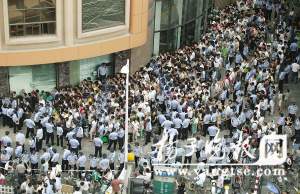 昨天上午9:10,華僑路上的華夏銀行的大門還沒有開,人群就開始騷動(dòng)。民警奮力控制混亂的秩序,但人群中還是不時(shí)發(fā)出呼救聲。在隔離區(qū)外的記者看到,有一個(gè)小女孩,已經(jīng)被人群擠得無法動(dòng)彈,整個(gè)身體被擠得緊貼住了墻壁,她一邊哭叫著“我不買了,我不買了,我要出去!”,一邊雙手徒勞地掙扎著,但是人群絲毫沒有松動(dòng)。