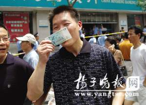 昨天上午10點(diǎn)半,在靠近華夏銀行大門口的隊(duì)伍外圍,一位老大媽手里拿著剛剛出版的揚(yáng)子晚報(bào)等報(bào)紙,向記者和過路行人訴苦起來。原來,她前天早早來到華夏銀行排隊(duì),后來排隊(duì)人多了,排在隊(duì)伍前面的人自發(fā)地手寫序號(hào)穩(wěn)定隊(duì)伍,她成了“第7號(hào)”,到夜里,她和排隊(duì)的人還接受了本報(bào)等各家報(bào)社記者的采訪。大媽說到這里揚(yáng)了揚(yáng)手中報(bào)紙:“你們看看,報(bào)上登的照片里還有我。我就排在第7個(gè)。后來排隊(duì)人越來越多,我熱得吃不消,就和排在隊(duì)伍前后的人打個(gè)招呼,回家洗了把澡,結(jié)果回來時(shí),聽說原先的隊(duì)伍被人趁亂重排座次了,我的第7號(hào)就沒人認(rèn)賬了。”