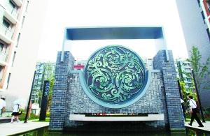 我都快顧不上找宿舍了。看那邊的影壁墻簡直就是藝術雕塑,上面或者是漢白玉的鳳凰,或者是麒麟。有的則是青銅造的圓盤,上面的圖案仿佛是動物結合體,也許就是一只鳳凰,在祥云中飛舞。草坪上,有許多不規則的木箱裝飾物,上面是用古文字設計出的運動項目造型。石獅子隨處可見,每一個石獅子記錄著一屆奧運會。看著紅色木頭座椅,走在藝術長廊,簡直不知道這里是奧運村,還是頤和園。
