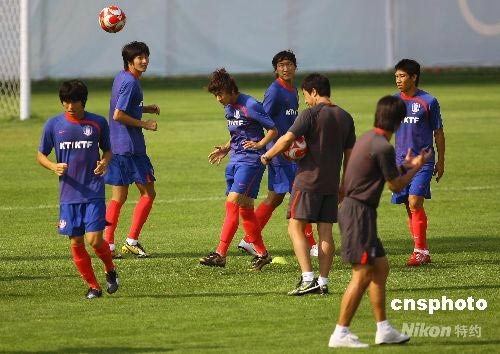 8月5日,參加北京奧運會足球比賽的韓國國奧隊在秦皇島進行開放訓練。8月7日,韓國國奧隊將在秦皇島首戰喀麥隆隊。 中新社發 劉新 攝