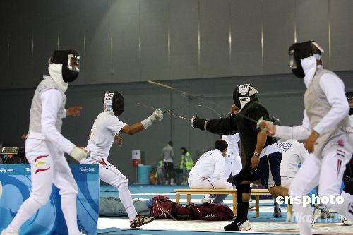 圖:埃及擊劍選手“頭頂五環”觀看訓練