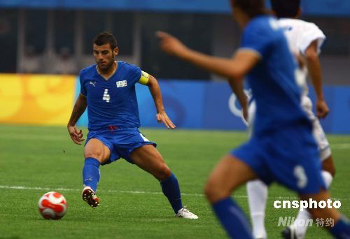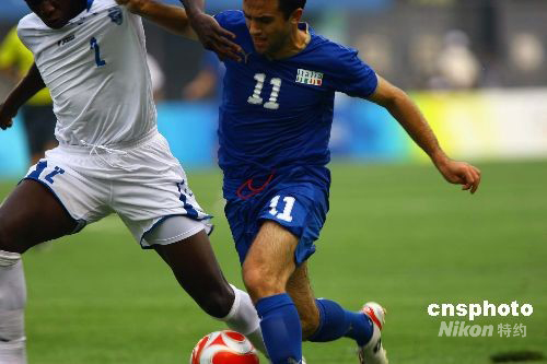 8月7日,北京奧運男足小組賽開賽,洪都拉斯隊與意大利隊的比賽在秦皇島奧體中心舉行,最終意大利隊3:0戰勝洪都拉斯隊。中新社發 劉新 攝
