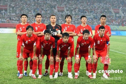 8月7日,北京奧運會沈陽足球分賽場男足預賽,中國與新西蘭1:1戰平。圖為中國隊首發隊員在比賽前合影。中新社發 張宇 攝