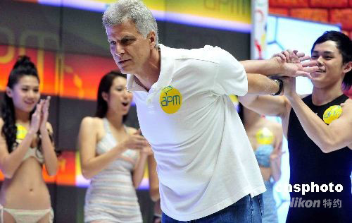 八月七日,美國泳壇傳奇人物、有“水怪”之稱曾在七二年夏季奧林匹克運動會上一舉奪取七枚金牌、成為史上在一屆奧運會上獲得最多金牌的美國前游泳運動員斯皮茨,八月七日出席在香港的宣傳活動。圖為斯皮茨在香港記者會上,示范運動員賽前的熱身動作。 中新社發 譚達明 攝 [1] [2] [下一頁]