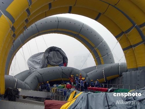 圖為建造中的氣房子。中新社發 佟偉 攝