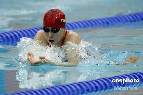8月12日,中國小將孫曄在北京奧運會女子100米蛙泳決賽中,以1分08秒08的成績獲得第7名。澳大利亞名將瓊斯獲得該項目金牌。中新社發 杜洋 攝