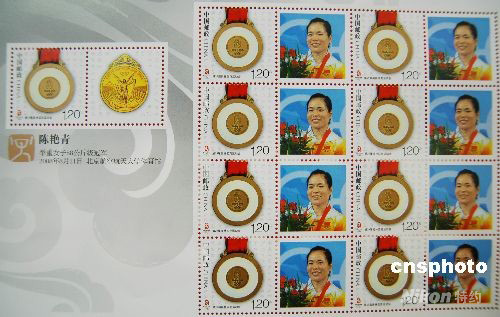 2008年8月14日,奧運舉重冠軍陳艷青“金牌運動員”即時版個性化郵品在蘇州正式發行,受到市民的熱烈追捧。 中新社發 朱子寒 攝