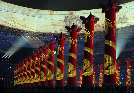《溫哥華太陽報》(Vancouver Sun)稱北京奧運會開幕式“嘆為觀止”,整個4個小時自始至終“令人目!(dazzling),15000參與者的表演“五彩繽紛”。巨大旋轉的地球模型,突出象征著中國在世界上的中心位置。古典音樂配合現代鋼琴,傳統與現代在這里結合。