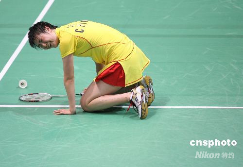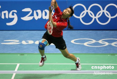 8月16日,中國選手盧蘭在北京奧運會羽毛球女單銅牌決賽中以1:2負于印尼選手瑪麗亞·克麗斯廷·尤利安蒂,無緣銅牌。 中新社發 武仲林 攝