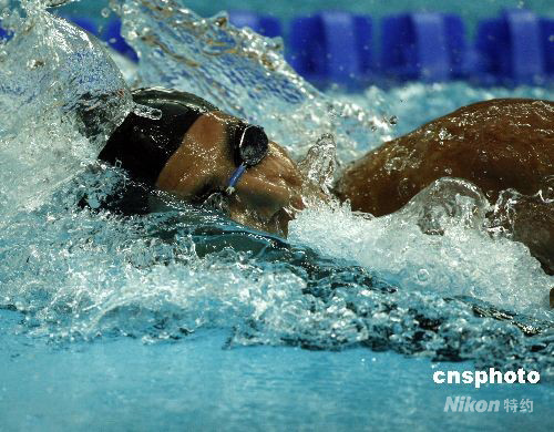 8月17日,北京奧運會男子1500米自由泳決賽中,來自突尼斯的邁盧利擊敗澳大利亞名將哈克特,以14分40秒84獲得金牌。 這是突尼斯從1960年第一次參加奧運會以來獲得的第一枚奧運會游泳金牌。 中新社發 杜洋 攝