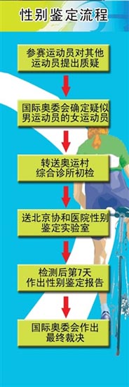 是不是每名運動員都需要接受性別鑒定?何方方說,北京奧運會僅對奧委會授權的可疑個例進行鑒定,主要是針對女運動員而言。首先是有人舉報,然后針對奧委會受理的可疑人員進行鑒定。“不是對每個人都進行鑒定。”