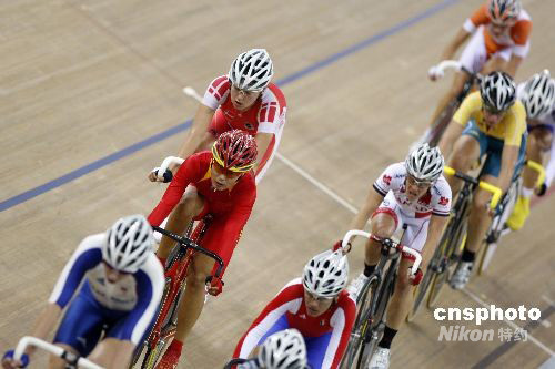 8月18日,北京奧運(yùn)會(huì)女子記分賽在北京老山自行車館拉開(kāi)戰(zhàn)幕。經(jīng)過(guò)激烈爭(zhēng)奪,荷蘭選手瑪麗亞娜·福斯以30分的成績(jī)摘得金牌,中國(guó)選手李燕獲得第10名,無(wú)緣獎(jiǎng)牌。中新社發(fā) 盛佳鵬 攝