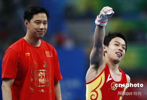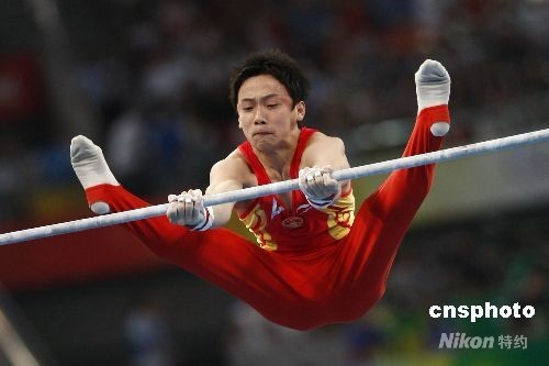 8月19日,中國選手鄒凱以16.200分奪得北京奧運會體操男子單杠金牌。中新社發 盛佳鵬 攝
