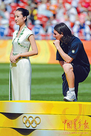 梅西無疑是本屆奧運(yùn)會(huì)男足比賽最大的亮點(diǎn),這個(gè)可愛的大男孩不僅不顧東家巴塞羅那的反對(duì)義無反顧地來到北京,還把他的“凌波微步”發(fā)揮得淋漓盡致。特別特別的是,他居然還學(xué)會(huì)了一句中文,一句無數(shù)球迷的心里話,并通過電視直播實(shí)實(shí)在在地說了出來,那就是:“謝亞龍下課”。