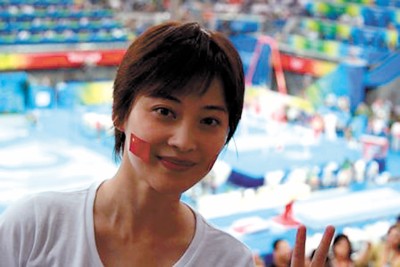 如果要評選一位啦啦隊美女,毫無疑問,這光榮稱號當(dāng)屬梅婷。身穿T恤,臉貼國旗,梅婷該不會喧賓奪主,搶了運動員的風(fēng)頭吧。