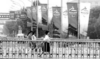 昨天,很多市民發(fā)現(xiàn)大街上的“中國(guó)印”旗幟悄然換成了殘奧會(huì)的“天地人”旗幟(如圖)。據(jù)悉,近7萬(wàn)面殘奧會(huì)旗幟轉(zhuǎn)換工作將于9月初結(jié)束。
