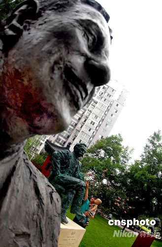 8月29日,顧拜旦、薩馬蘭奇、羅格雕像亮相東城區(qū)東四奧林匹克社區(qū)公園。顧拜旦雕像為坐像,高195厘米,花崗巖基座高70厘米,薩馬蘭奇和羅格雕像為半身胸像,像高分別為68厘米和65厘米,花崗巖基座高為120厘米。雕像全部由北京金臺(tái)藝術(shù)館館長(zhǎng)袁熙坤親手制作,在殘奧會(huì)開(kāi)幕前安放在東四奧林匹克社區(qū)公園,供各國(guó)殘奧會(huì)運(yùn)動(dòng)員和社區(qū)居民免費(fèi)參觀(guān)。中新社發(fā) 杜洋 攝