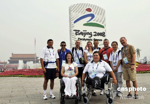 圖:羅馬尼亞殘奧運(yùn)動(dòng)員天安門(mén)廣場(chǎng)合影