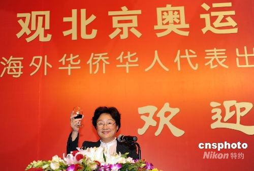 9月6日,國僑辦主任李海峰在北京向華僑華人代表敬酒。當(dāng)日,國務(wù)院僑務(wù)辦公室舉行宴會,歡迎出席北京殘奧會開幕式的100位華僑華人代表。中新社發(fā) 廖攀 攝
