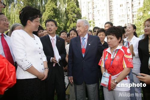 圖:薩馬蘭奇參觀北京東四奧林匹克社區公園