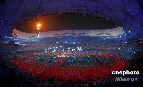 9月17日晚,北京2008年殘奧會閉幕式在國家體育場“鳥巢”舉行,國際殘奧委會主席克雷文稱贊這是有史以來最偉大的殘奧會。圖為閉幕式上精彩紛呈的表演。中新社發(fā) 盛佳鵬 攝